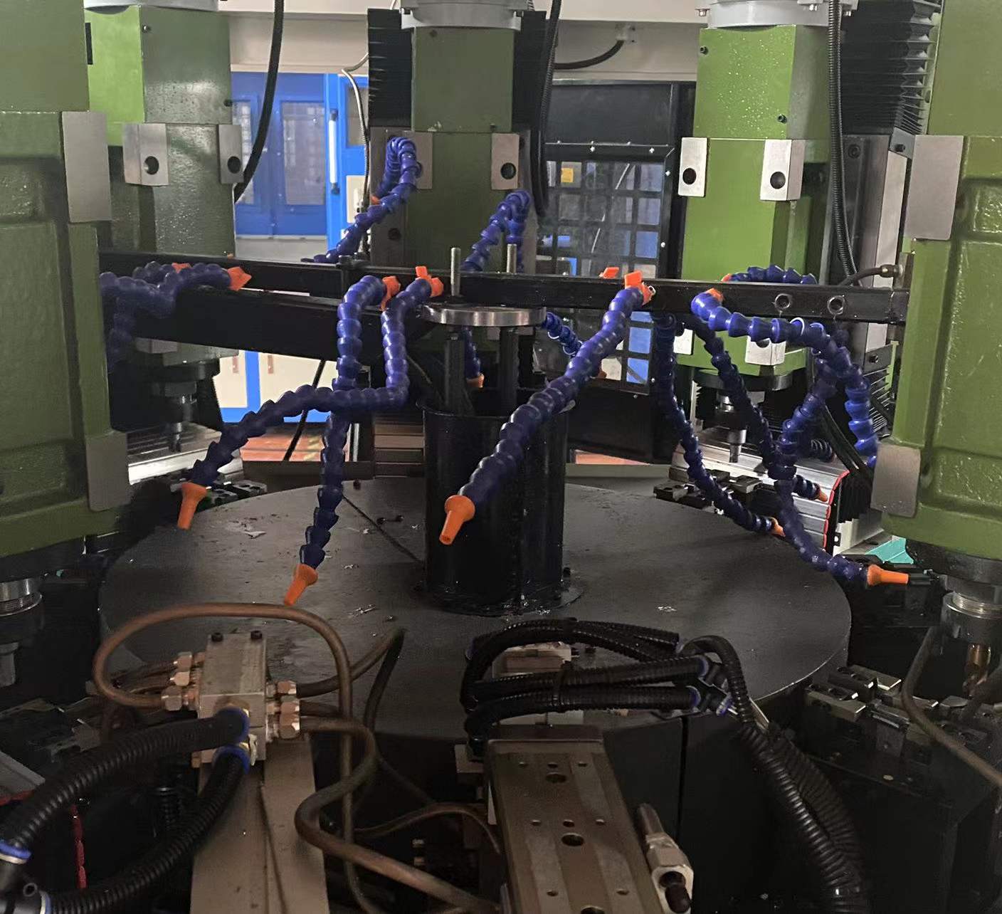 2臺機床配?拖?外桁架機械? ,中間料倉上料 ,加?完成?件可配出料槽或輸送帶下料 ,也可防??件磕碰放同料倉原 位循環??取料 ;機械?上料換料時間約( 8 - 1 0 )s ;適合加工重量5kg以內?型尺?產品 ,機床含桁架機械?尺 ?:? X 寬 X ?( 5 m * 1 . 8 m ” 3 . 6 m ),也可以根據客戶需求進?定制 。